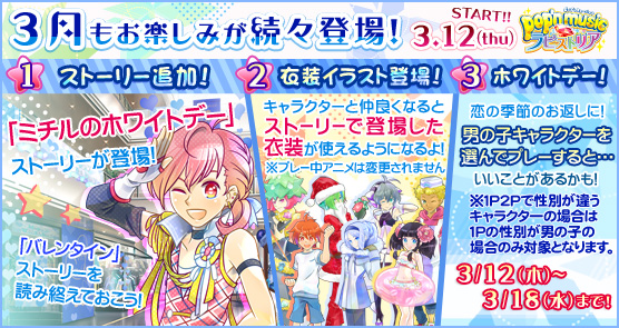 「ミチルのホワイトデー」ストーリーが登場するよ。キャンペーンでキャンディを配るミチルくんだったけど…?続きはプレーしてみよう~!