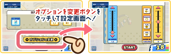- ポップ君を叩いた時の判定にあわせてタンバリンの音が鳴るよ