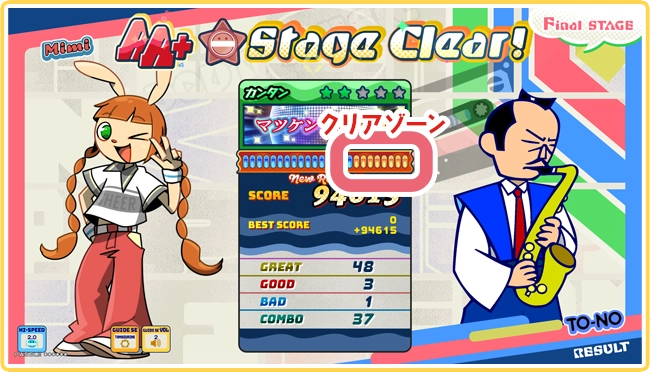 最終的なグルーヴゲージが赤いクリアゾーンのところまできていれば、ステージクリアだよ