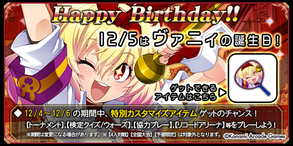 12/4(木)~12/7(日)ヴァニィさんの誕生日記念キャンペーン開催!