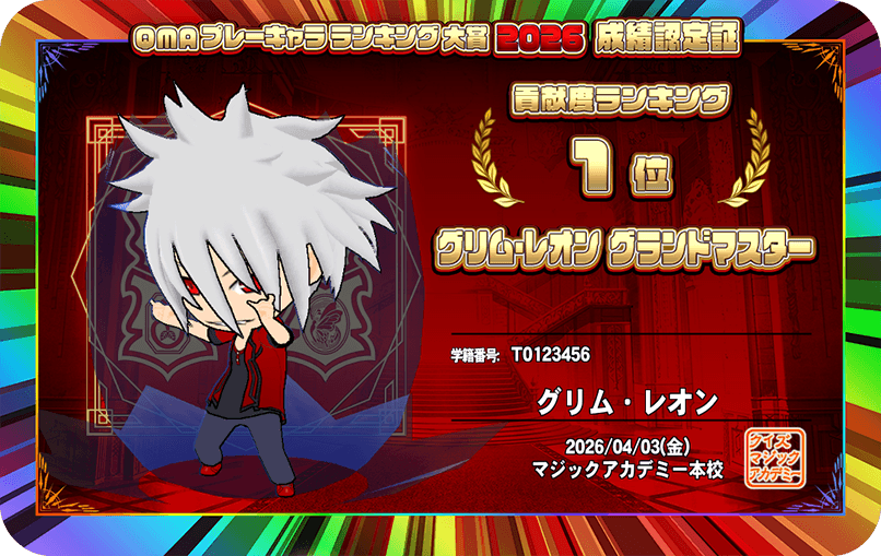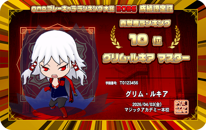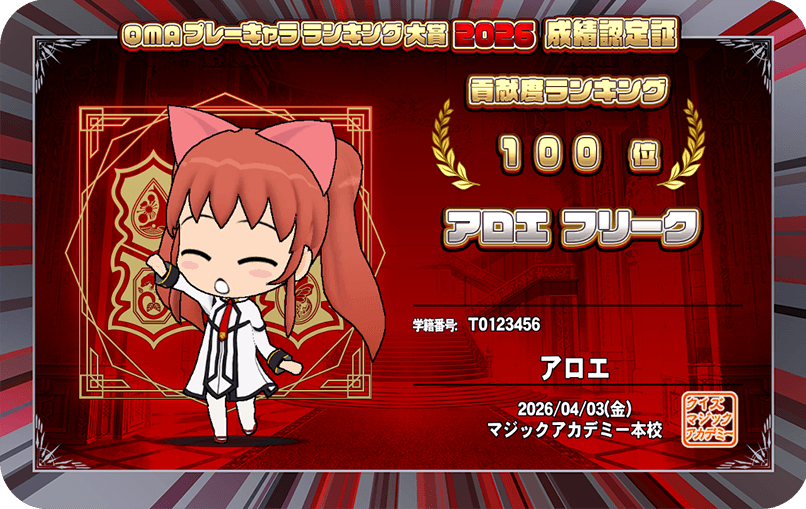 さらに、今回は参加したプレーヤーはカードコネクトとの連動で「QMAプレーキャラランキング大賞2026成績認定証」が印刷できるようになります。
