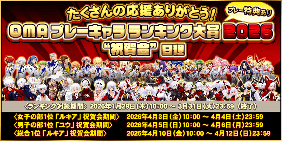 『QMAプレーキャラランキング大賞2026』開催期間中、各キャラクター1日ずつ『キャラ祭り』を開催!