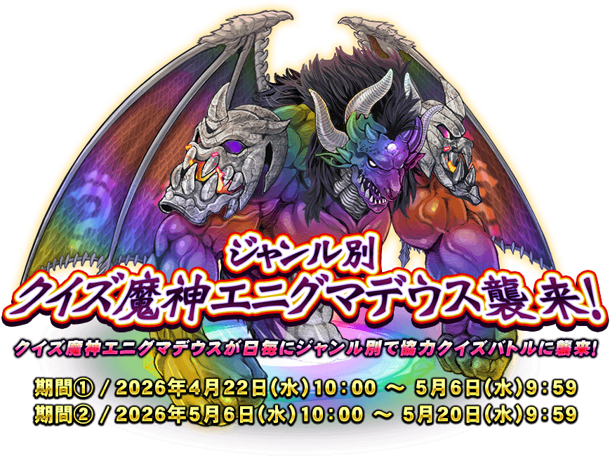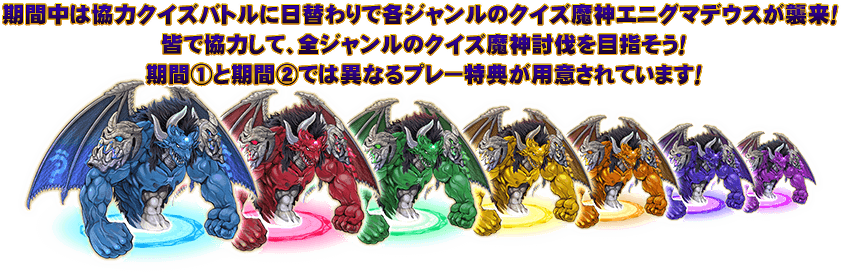 - 期間中に任意のクイズ魔神エニグマデウスと対戦する。