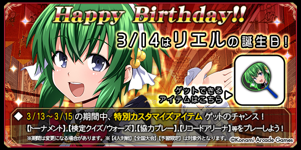 3/13(金)~3/15(日)リエルさんの誕生日記念キャンペーン開催!