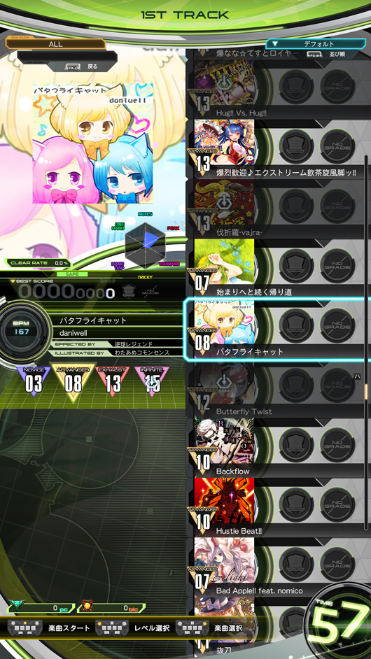 プレーしたい楽曲と難易度を選択しまショウ!