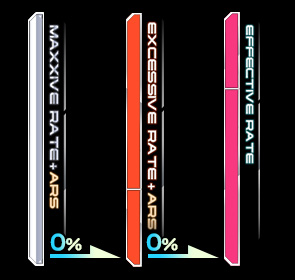 SOUND VOLTEXにはクリアの基準として複数のゲージ(レート)があり、上位のゲージが0%になった際に下位のゲージに移行するシステム。